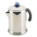 - PERFECTLY POLISHED: Heavy-duty stainless steel percolator makes up to 12-cups of coffee and is finshed with a mirror polish